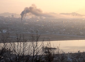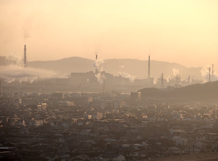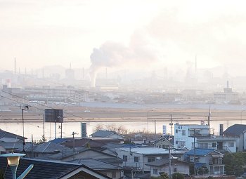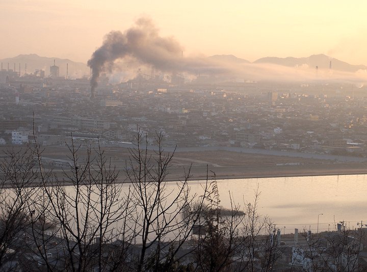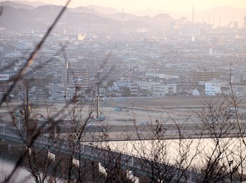 そぅしておりますと、芦田川方向が開けて来まして眼を向けますと、う〜ん、未だに火災現場からは黒煙が…