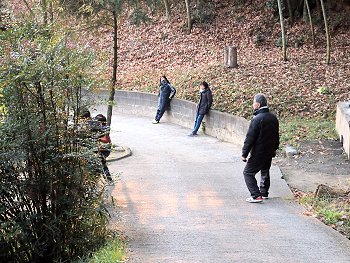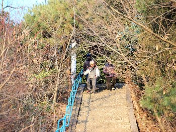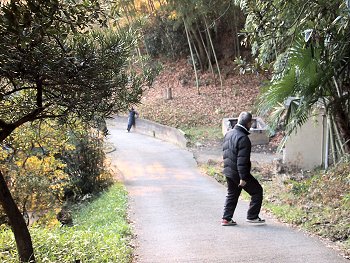 先行の男性…松尾神社を目前に横歩きで前進です。やはり足がお悪いようです。