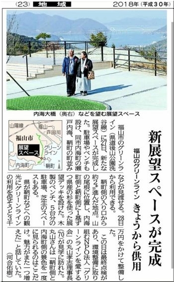 この近辺には従来より展望スペースは存在しまして、車も結構な台数で駐車が可能でありました。それに、鞆町側も内海町側も眺望が可能でありました。