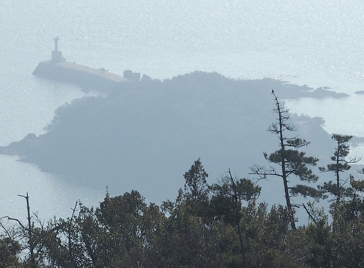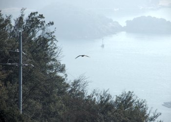 ですから、鞆町側をメインに眺めておりましたら、眼下を一羽のトンビが枝に接近しては離れ、また接近…と何故か繰り返しておりました。