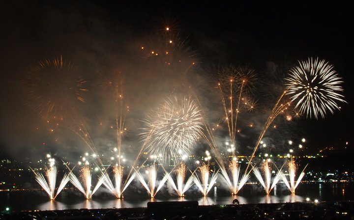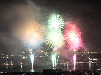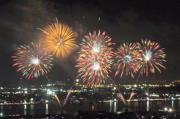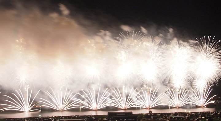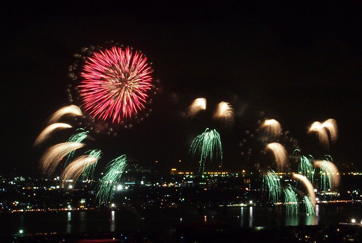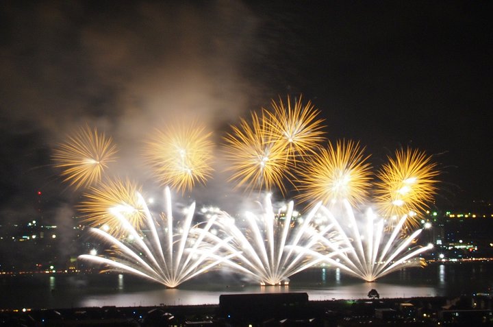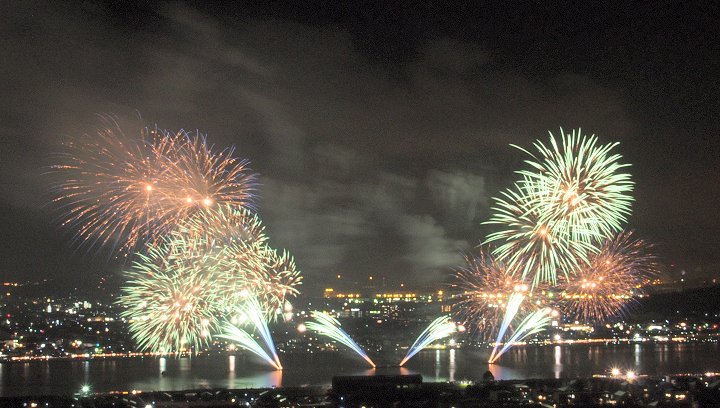 幸いに花火大会開催前には降雨は治まりましたけど、何となく気乗りしない中での花火見物。花火を画像に納めます気持ちよりも、肉眼で花火を楽しみます気持ちの方が強かったのかも(^-^)