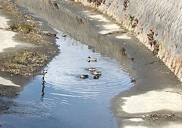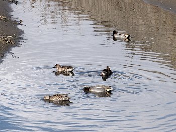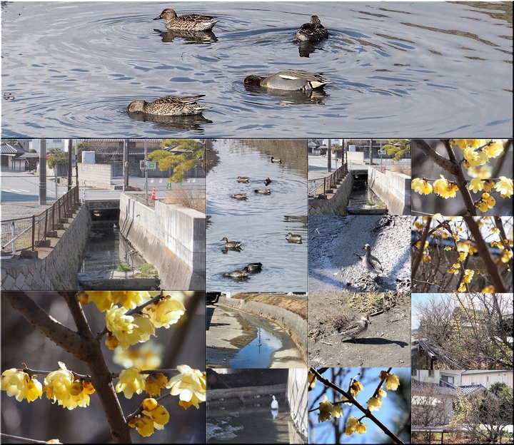 水呑川を覗きますと、ここにはカモsanご一家がノンビリと水浴び中。全部で5羽。ここには1年を通じてカモsanを見掛けますけど、このカモsan達のネグラは何処なんでしょうねぇ〜
