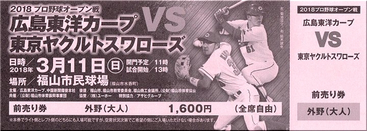 ふ〜ん、今年の福山市民球場でのオープン戦は、「カープ×ヤクルト」戦のようですねぇ〜