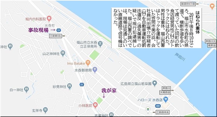 我が家からこの場所までは、480mばかり離れています。が、この時の救急車のサイレン音、我が家からスグ近くで水呑郵便局辺りに止まったように聞こえました。
