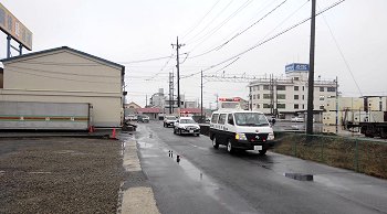 国道2号線側から北には比較的広い道幅なのですけど、貨物ヤード入口付近から直進道も右折道も道幅は随分狭くなります。この道幅の狭い道路から広い道路に入りますから危ないのかも…