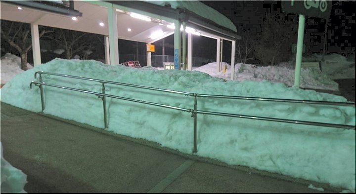 撮られた時間帯は分かりませんけど、ひっそりと静まりかえりました夜間の雪景色…