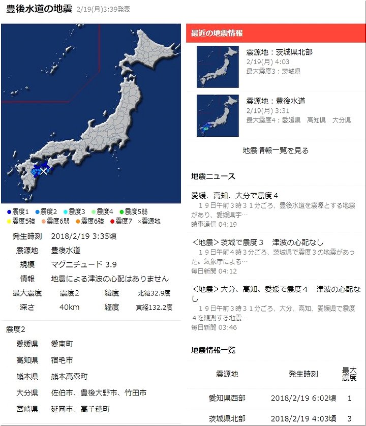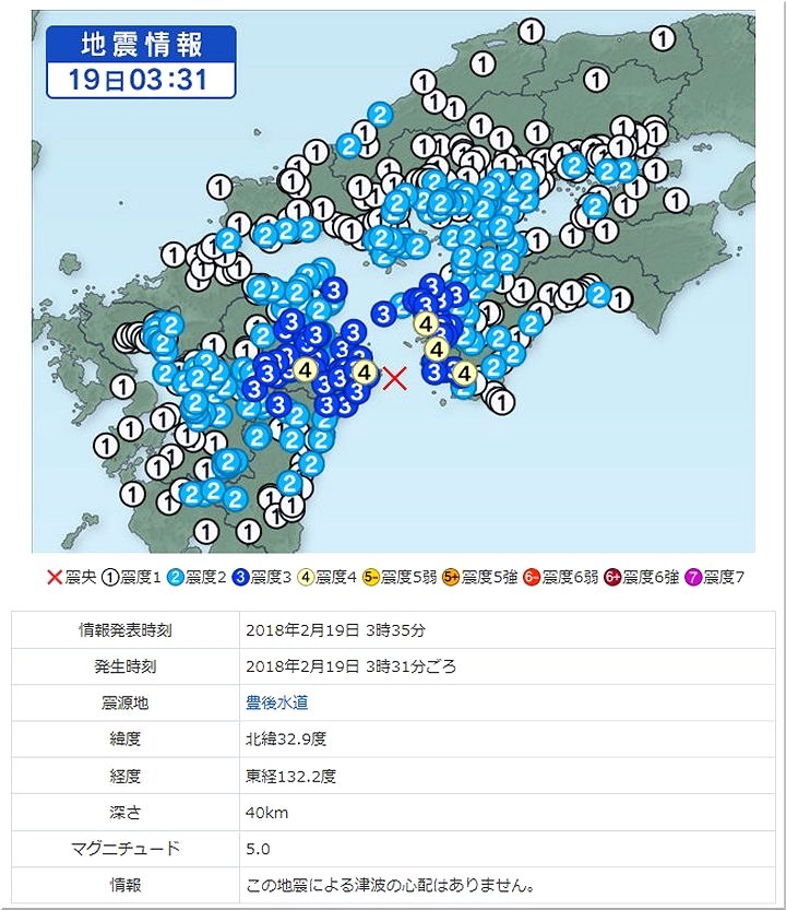 本日の深夜というか未明に、豊後水道を震源地とする地震の発生がありましたようですネ。