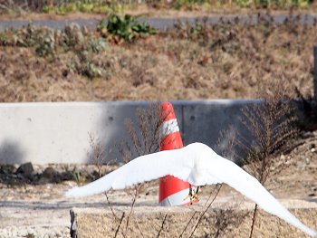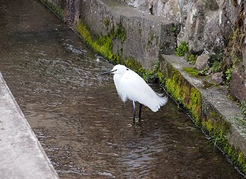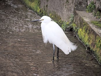 墓地からの帰路ではシラサギ君が一羽、たたずんでおりました。