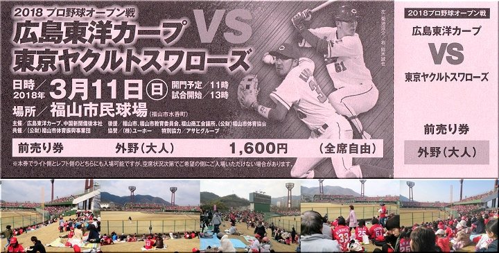 先日・3/11(日)は福山市民球場でオープン戦「ヤクルトスワローズ×広島カープ」の観戦でした(^.-)☆