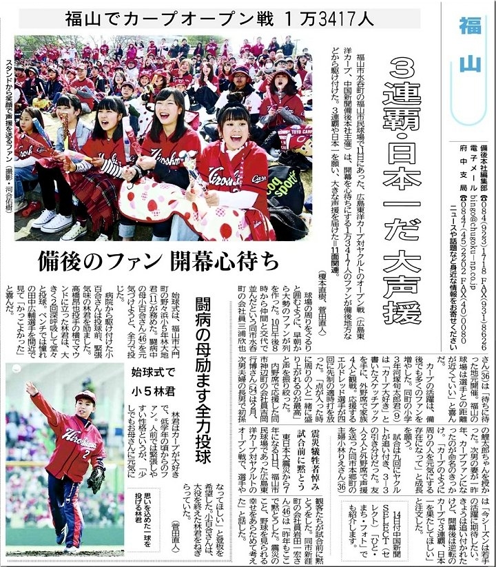 勝敗はともかく、オープン戦は我が町でのお祭りみたいなものですから、元気なカープの選手を眼にしますだけでも嬉しいものであります(^_^)v