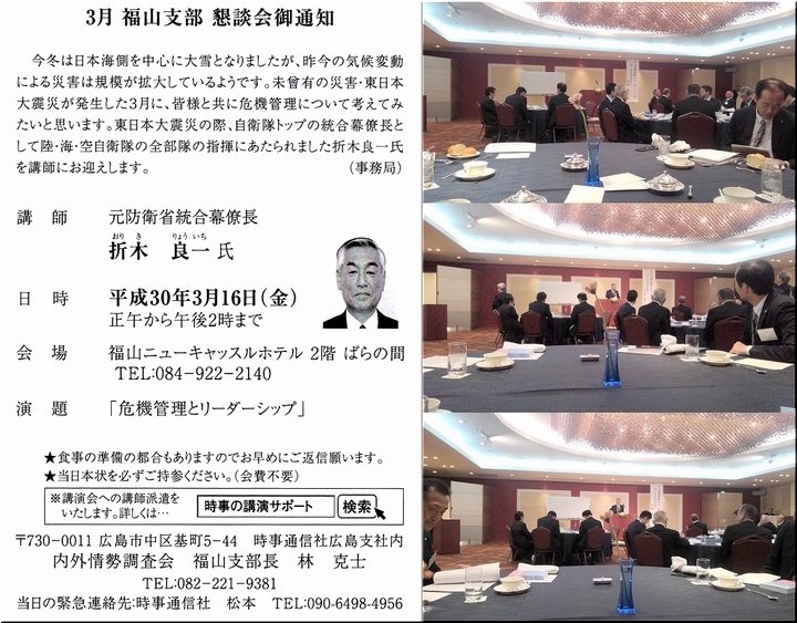 本日は、内外情勢調査会福山支部の月例懇談会にGONsanが代理出席となりました。