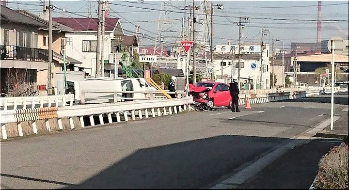 既に警察の方は来られ検証中のようでしたから、30分ばかり前の事故発生でしたのかも…