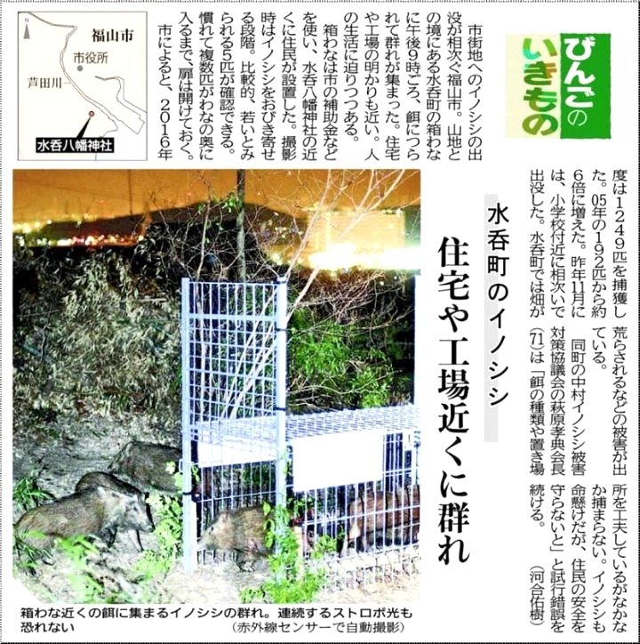 これは、3/19(月)の中国新聞の朝刊記事なんですけど、前自治会長の萩原さん、見事に捕獲されましたようですねぇ(^_^)v