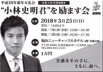 本日・日曜日の午後、福山ニューキャッスルホテルで開催の『小林代議士を励ます会』…大変盛況でしたネ(^_^)v