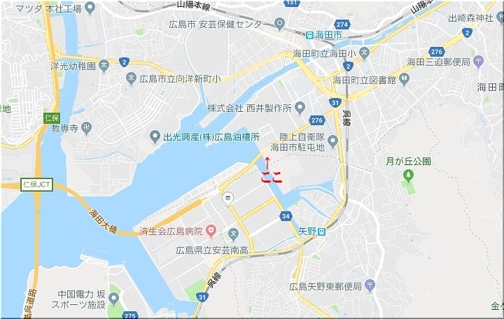 海田大橋に向かっていますと、必ず眼が向きます海上自衛隊海田市駐屯地の一角に存在します「パトリオット」。今でもここに常設です。