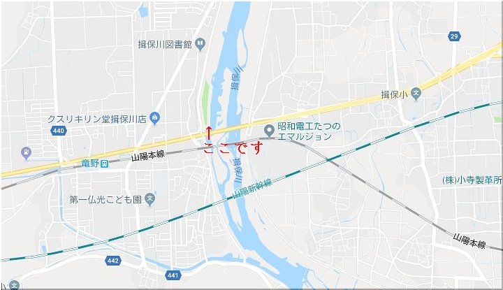 場所は「揖保川」との事でしたから、グーグルマップで捜してみましたら、うん、うん、きっとここなんでしょうねぇ(^.-)☆