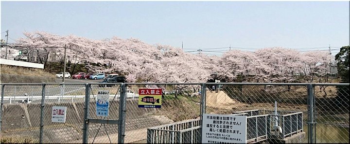 これはきっと平日に撮られましたのでしょうから、河川敷に駐められています車は4台のみ。ですが、今日・明日は天候も良さそうですし、温かいし、絶好の花見日和。大勢の方々が花見にヤッて来られますのでしょうねぇ〜