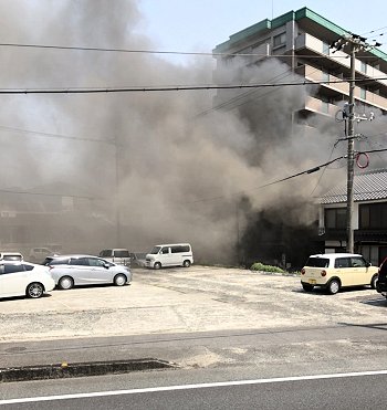 友人がこの場所を通り火災に気付きました時には、まだ消防車の到着はなく、「早く外に逃げろ!!」と言う叫び声が耳に入った…と言っておりましたので、火災発生の直後でしたのかも…