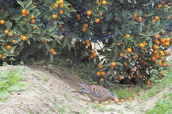 先日の日曜日、温かくなりましたからソロソロまた草取りをしなくては…と、キンカン方向に眼を向けますと、この日は鳩sanが2羽、落下したキンカンを美味しそうにムシャムシャと(^-^)