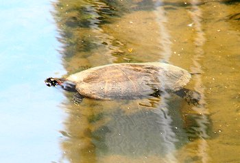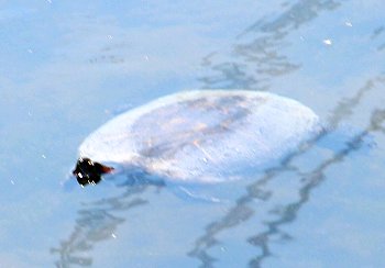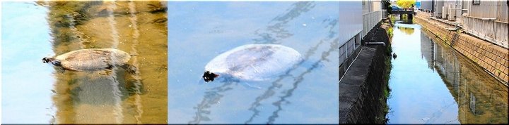 う〜ん、残念…と暫く川面に眼を向けておりましたら、どこからともなく亀sanが出現です。水面から顔のみ出して橋の下方向に向かっておりました。