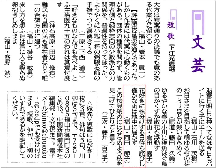 ですけど、こぅして新聞紙上に掲載作品を見掛けますと、「お元気におられるのだ…」と、妙に嬉しさを感じます自分自身に苦笑です。