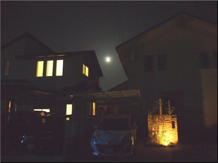 たまたま喫煙のため外に出ますと、眼に入りましたのが我が家前のお宅の建物の間からお月様が\(^o^)/