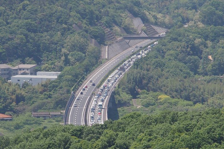 そぅそぅ、「鴨山城跡」からの眺望時に山陽自動車道に眼を向けましたら、上り車線が大渋滞でありました。