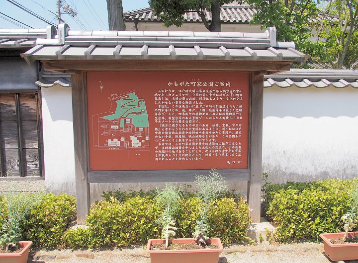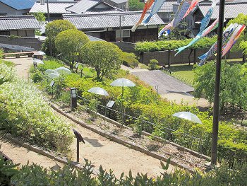 江戸時代の岡山藩と鴨方支藩を結ぶ官道「旧鴨方往来」沿いに、2棟の町家や土蔵、井戸などを修復し、伝統植物園や芝生広場などを あわせもつ歴史的景観を残す憩いの公園。(平成10年10月にオープン)