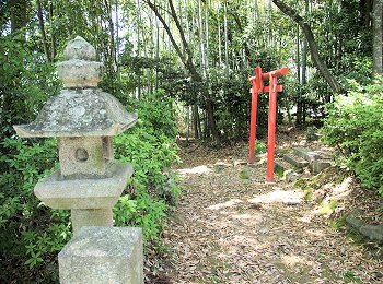 主郭の北側は自然の鞍部で主郭側は巨石群になっており、堀切の役割をはたしていたようである。ここから東へ降りる遊歩道があり、これを降りると駐車場に至る。