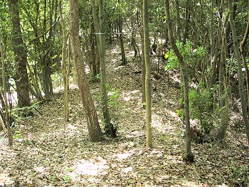 ここに曲輪が存在しました時代に周辺の景観を見廻しますと、さぞ素晴らしい眺望が楽しめました事でしょうネ…今では樹木が生い茂りまして眺望出来ますのは一ヶ所のみ。