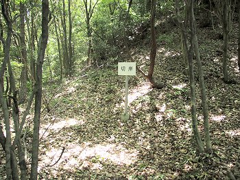 周辺を見廻しておりますと、「切岸(きりぎし)」の表示板が…