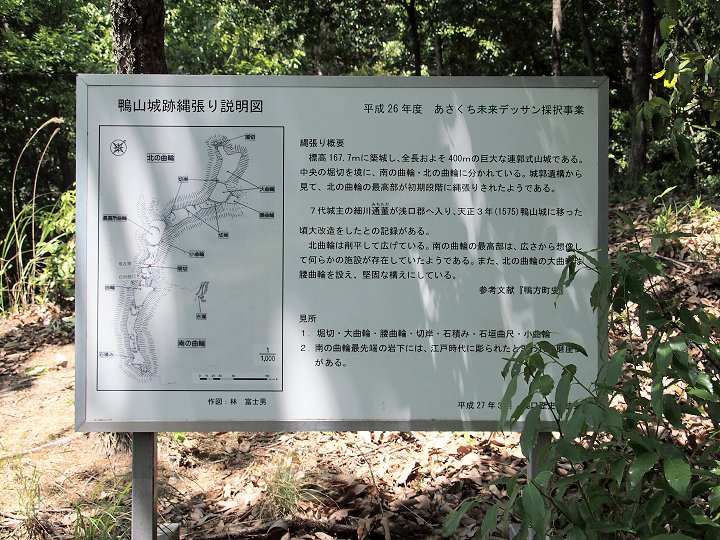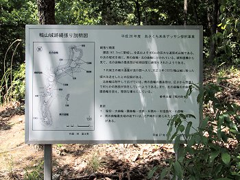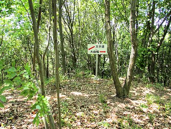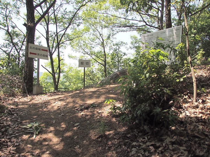 そうしますと、「堀切」「北の曲輪→」「←南の曲輪」の表示板が…