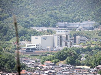 西方と言うか正面方向に眼を向けますと扶桑薬品工業の建物が(^.-)☆ そして、その右方向には山陽自動車道。時間を確認しますと、A.M.11:42でありました。