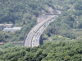 鴨方IC少し手前の山陽道上り線、もう渋滞が始まっておりました。帰省しますのも大変ですねぇ〜