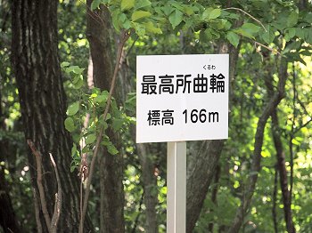 「切岸」の上に進みますと、今度は「最高所曲輪 標高166m」の表示板が…