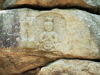 この合流地点でも、大きな岩に磨崖仏が刻まれておりました。
