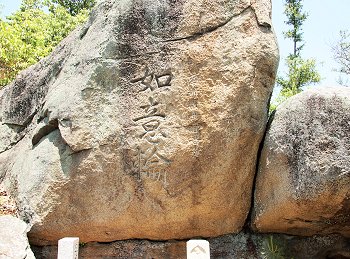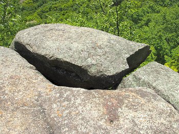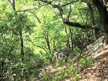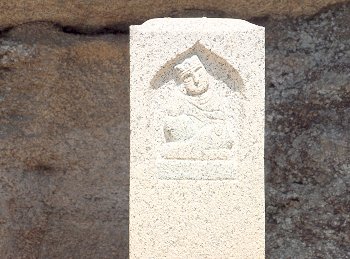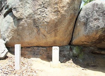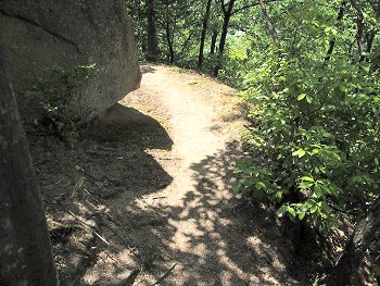 磨崖仏が刻まれました岩の下から右側方向に上り、崖際の細い道を怖々進行です(^-^)