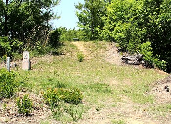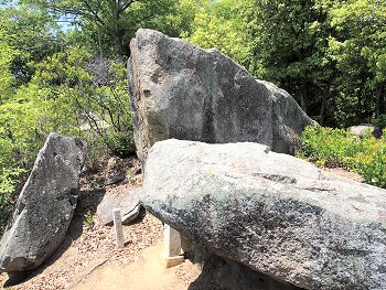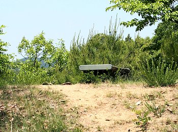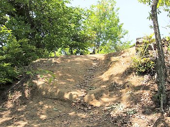 暫く進んで行きますと曲輪跡に出まして、そこには石造りのベンチが存在です。