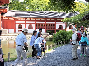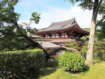 ミュージアム鳳翔館で数々の国宝や文化財を眼にしました後は、鳳凰堂の裏手を通って正門へ向かいます。