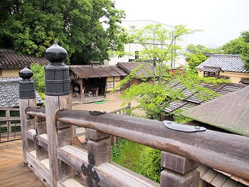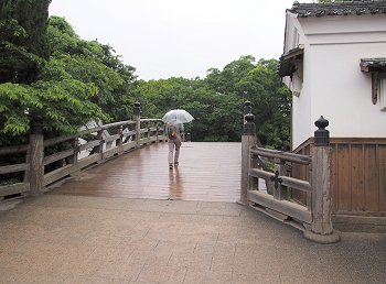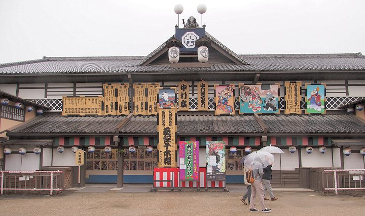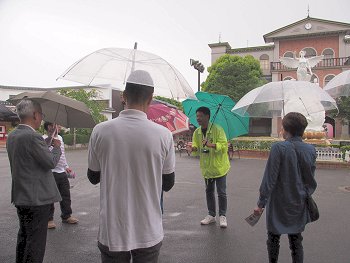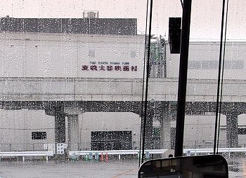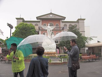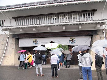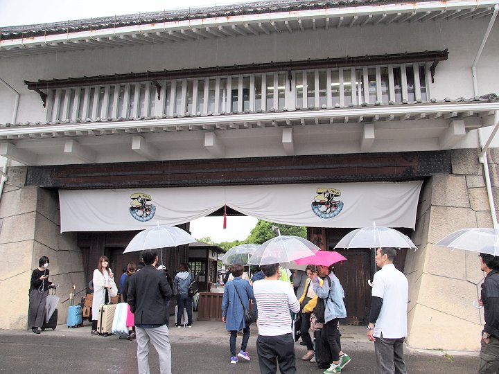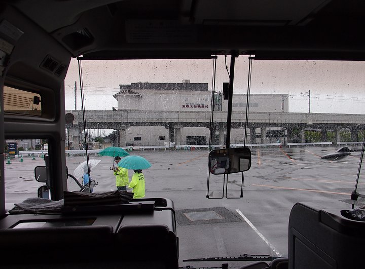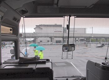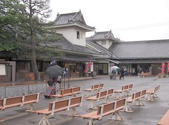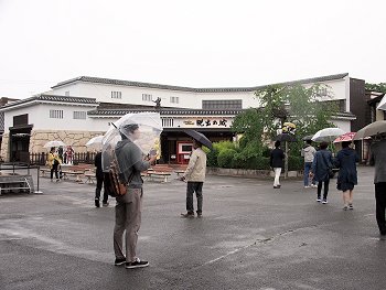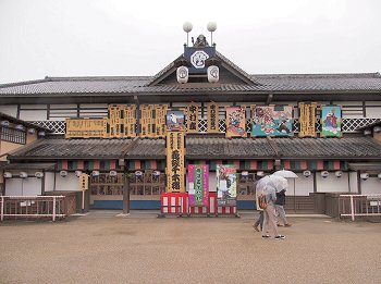 バスに乗り込みますと、まず向かいましたのが東映太秦映画村。雨足は次第に激しくなりまして、駐車場に到着時には土砂降り状態でありました(^-^;