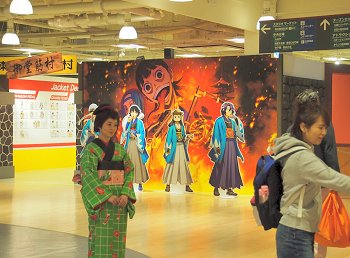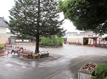 京福電車「太秦」駅より徒歩5分。少し上り坂を上がると、映画村に到着。入口は「パディオス」といわれるエンターテインメント施設にあります。