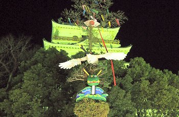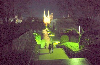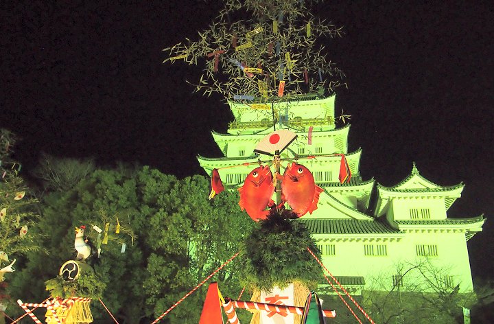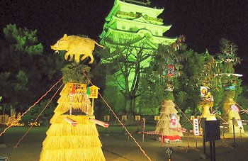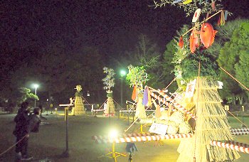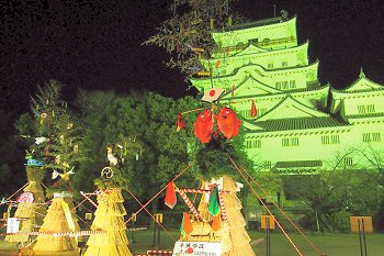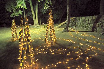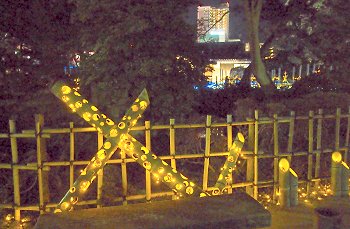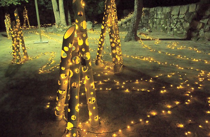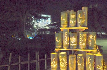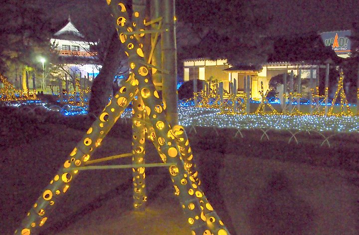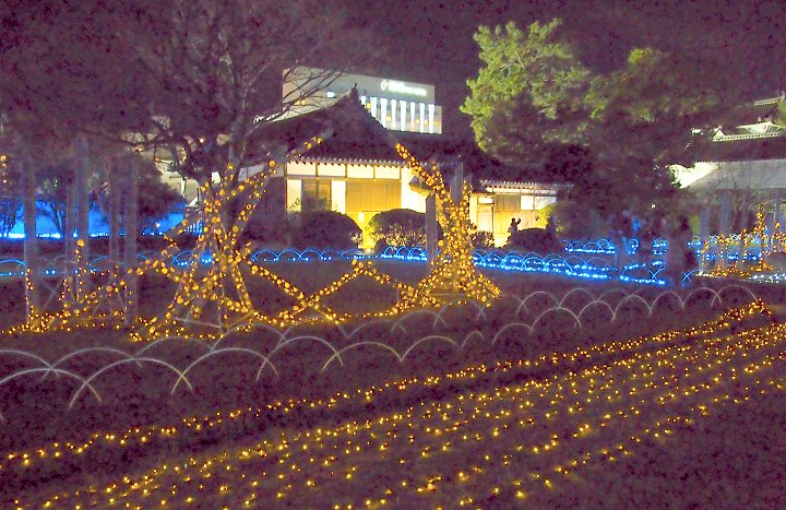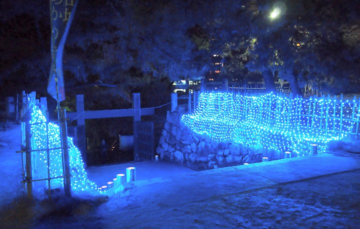 福山城広場で、とんどの展示と竹穴ライトアップイルミネーションを楽しみました後は、「ふくやま美術館」方向に降りてみますことに。