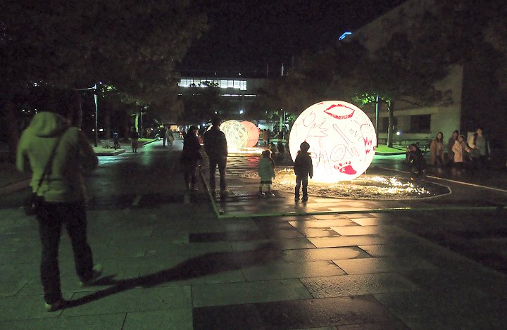 「ふくやま美術館」から「広島県立歴史博物館」への通りには、大きなボールが灯りでともされ、これまたキレイ(^_^)v