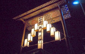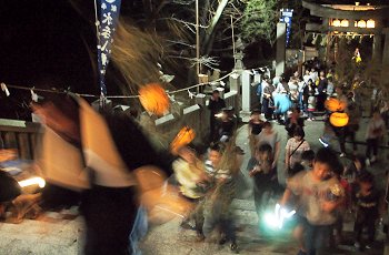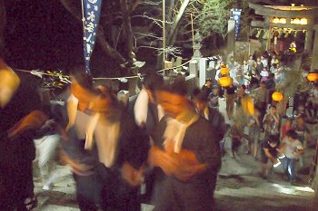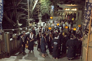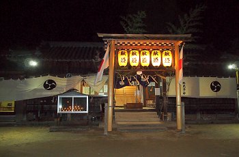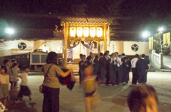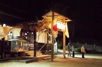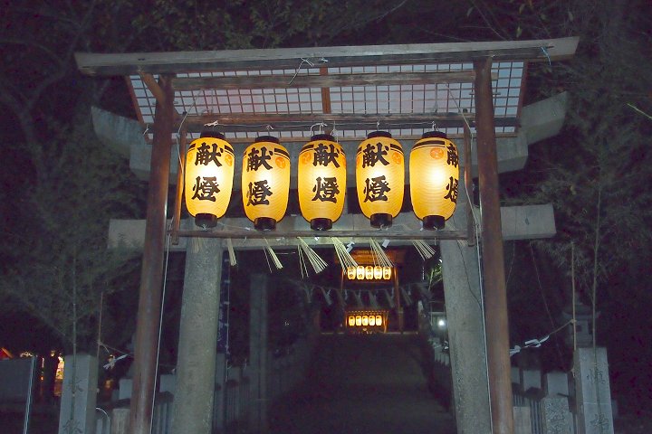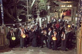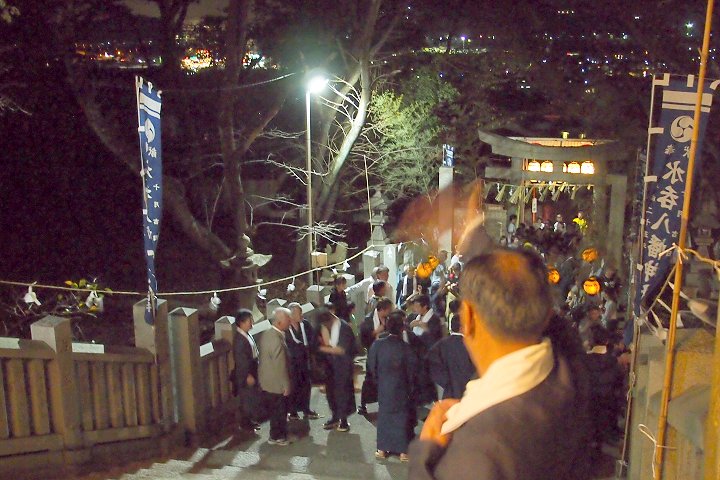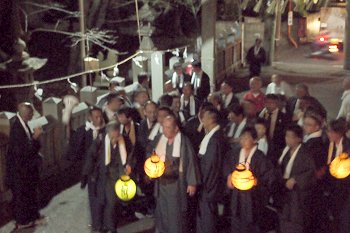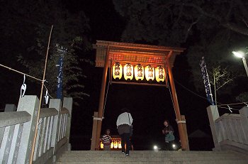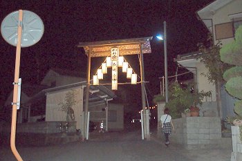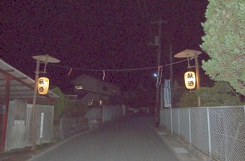 八幡神社への参道は、各自治会が早朝から設営しました御神燈が明々と(^-^)