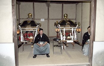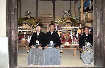 蔵の中の御神輿の前には各地区の年長(数え年45歳)の皆様が凜々しいお姿で(^-^)/