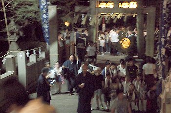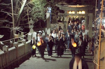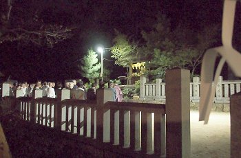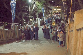 境内へ勢揃いされますと、神殿に向かって拝礼です。そして、神主様のお清めと続きます。