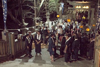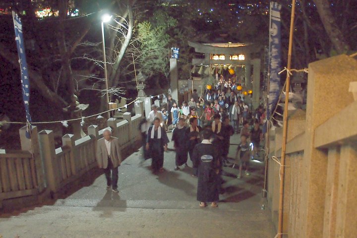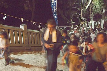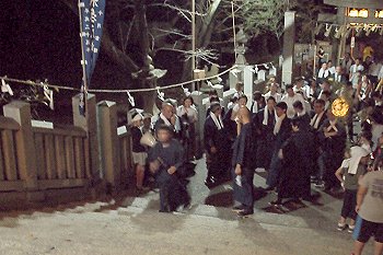 境内への石段の下段に到着されますと、ここで一旦、皆さん勢揃いです。