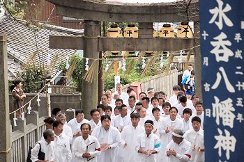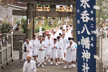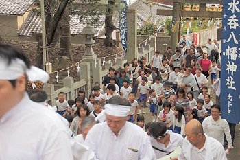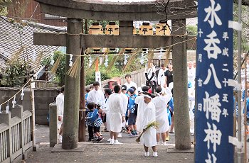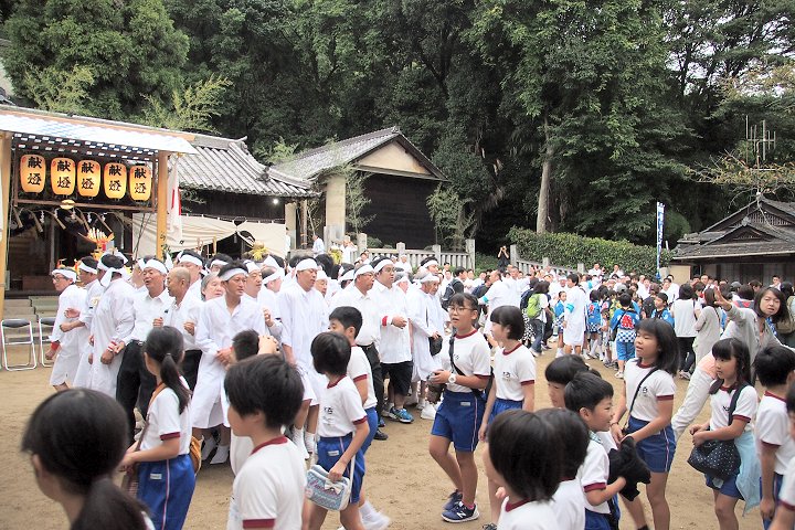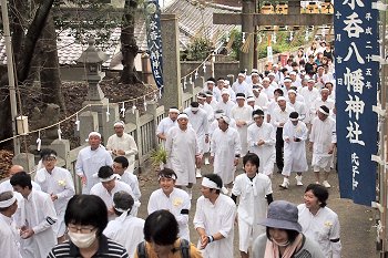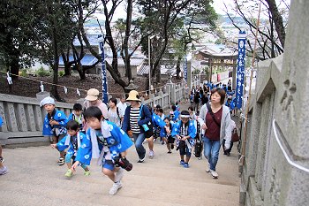 土井・浜地区の皆様がヤッと八幡神社境内にと到着です(^.-)☆