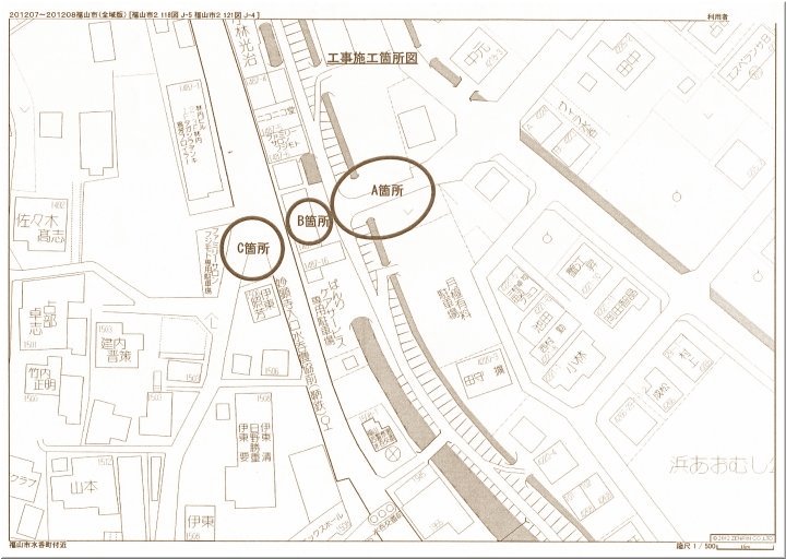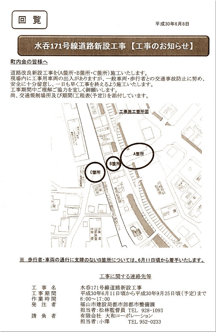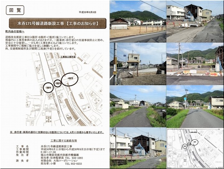先月でしたか…町内会の回覧に、こんな案内がありましたので、我が家までは少し遠廻りとなりますけど、この工事現場経由で我が家へと…