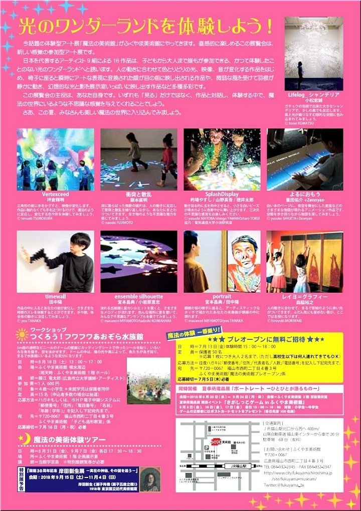これは、昨日の朝刊の新聞広告に載っておりましたけど、「ふくやま美術館」の『光と遊ぶ超体験型ミュージアム 魔法の美術館』…仲々楽しそうですネ(^.-)☆